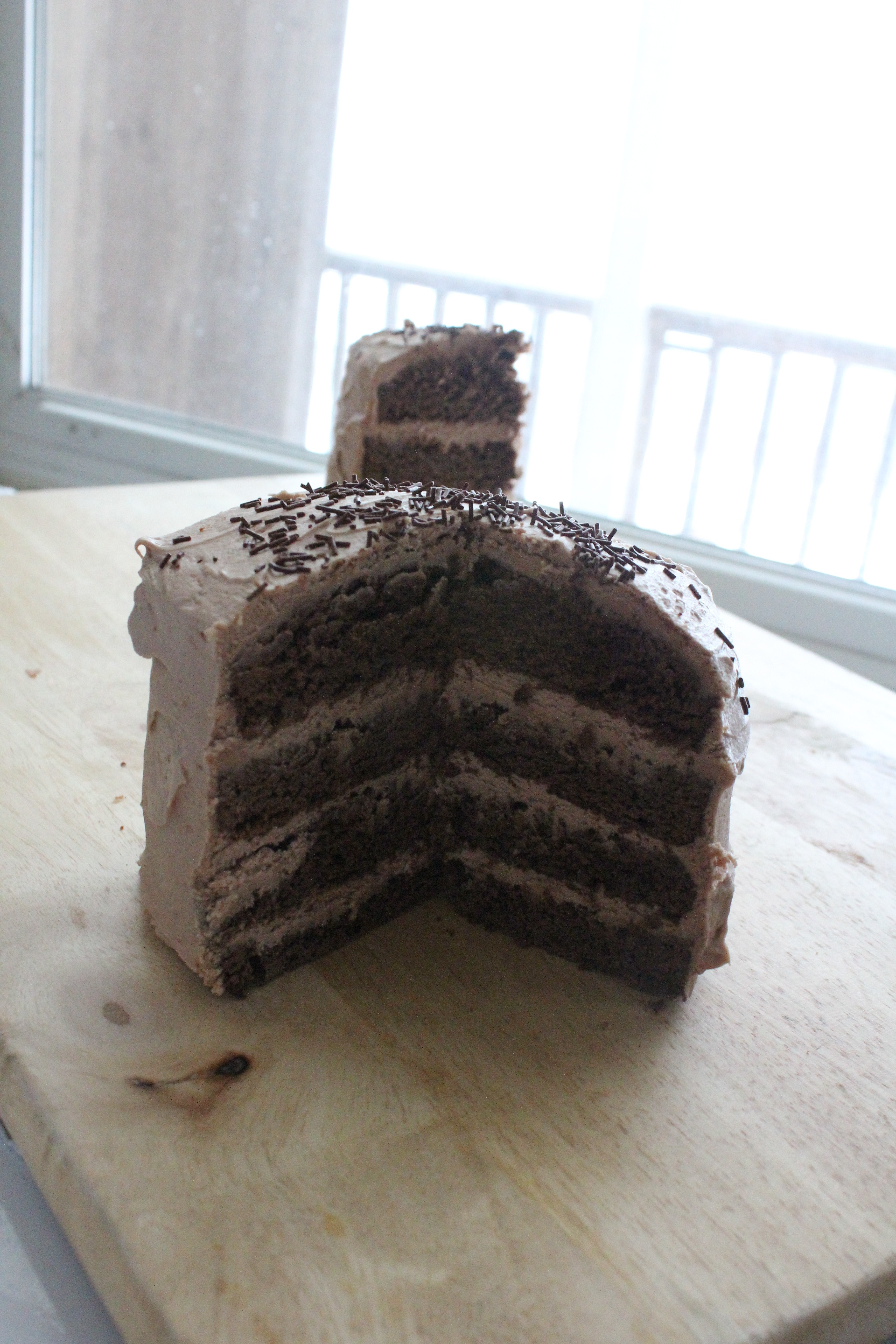 So I made a cake. To celebrate her. To celebrate us. Our journey. We never really got to celebrate when she was born. We went straight into survival mode. So today we did. We ate cake and danced with her. We told her how perfect she is. How she is our own little super hero. She may have had her first major baby meltdown. But woke up happy as can be after. This cake was good, the frosting lush, the cake dark and dense. I over baked it a bit since I decided to mess with the cake size, don’t do that. It’s meant to be moist. A perfect cake to celebrate those you love.