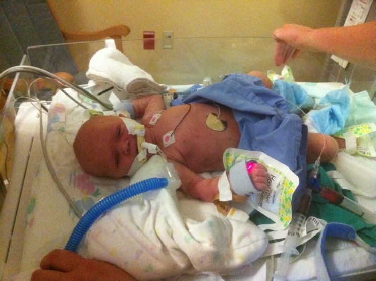 When they finally let me shower and pee I was ready to go. Only I became extremely woozy and almost passed out. So I had to keep waiting. Finally I got to go up to see her. I had barely even touched her and definitely didn’t know what her face looked like yet. When I saw her she looked so much like Josh. She was perfect. She was hooked up to a million machines and on a ventilator. I had no idea what was happening at this point. I was in a haze, flooded with hormones to bond with a baby I wasn’t allowed to touch. Months later my husband told me he could tell I was really out of it because I was talking so strangely, and overly happy. They only let me stay for a few minutes at first because they were worried about me passing out. I went back down to my room with my husband and tried to settle in.