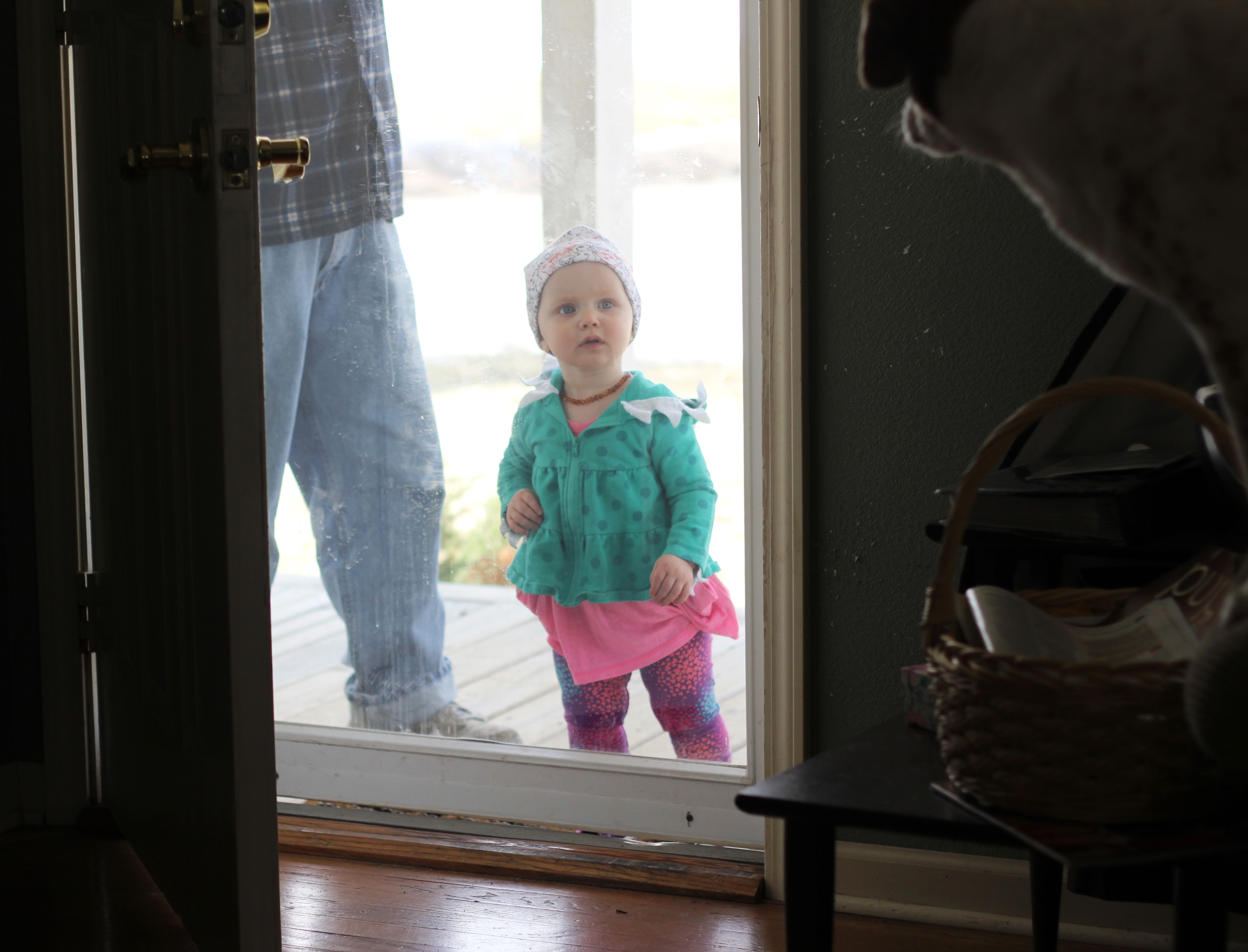 Peaking in and out of doors and windows is one of her favorite things to do. Especially when dogs are involved.