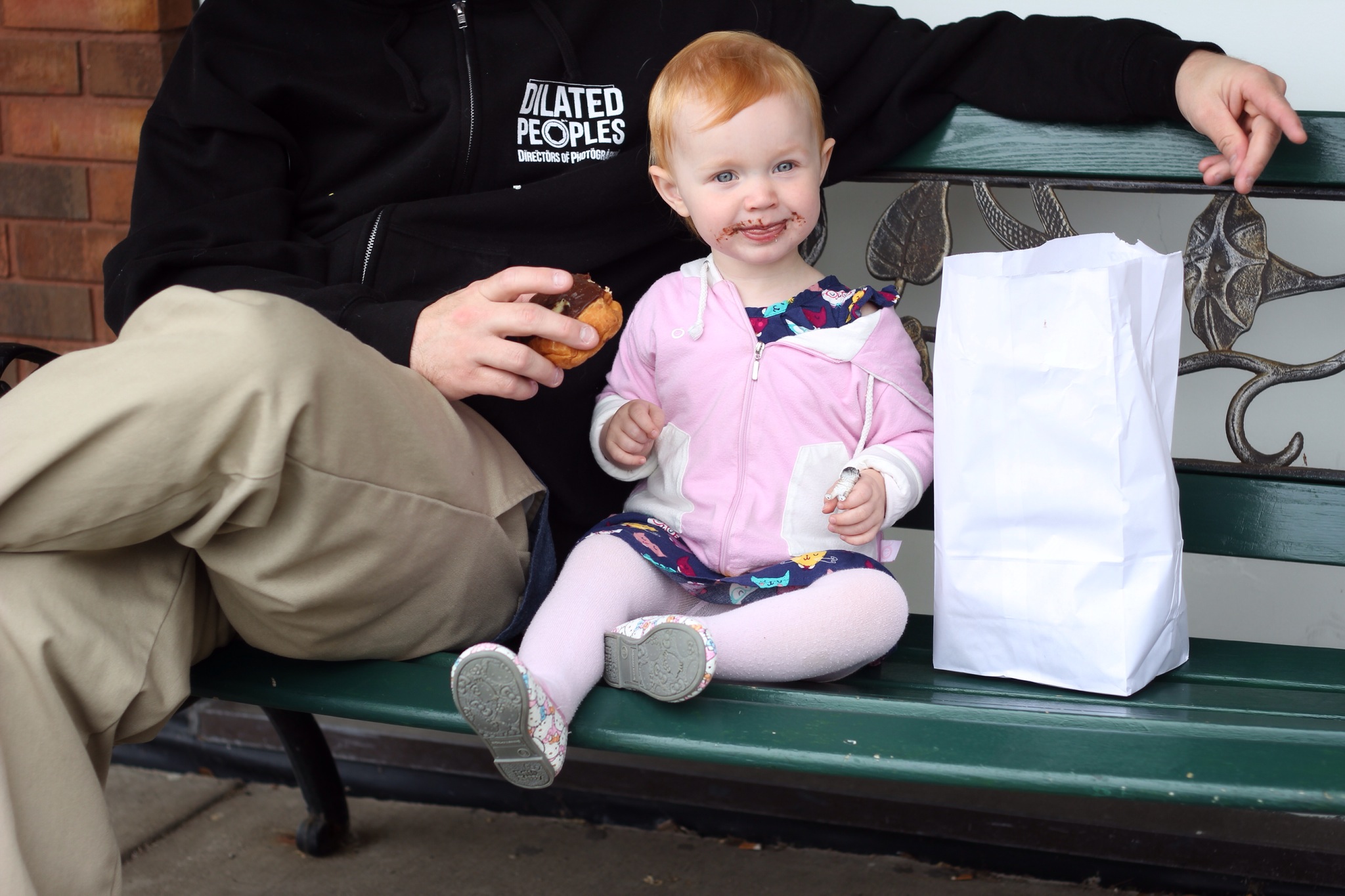 She turns two tomorrow. It sort of boggles my mind. Where the fuck have two years gone? Sorry for all of the profanity, but I just can’t get my head around it. It feels like I’ve known her forever, but like just yesterday that we met. This morning we took her out for an early birthday doughnut breakfast. She ate an entire doughnut. She rules.