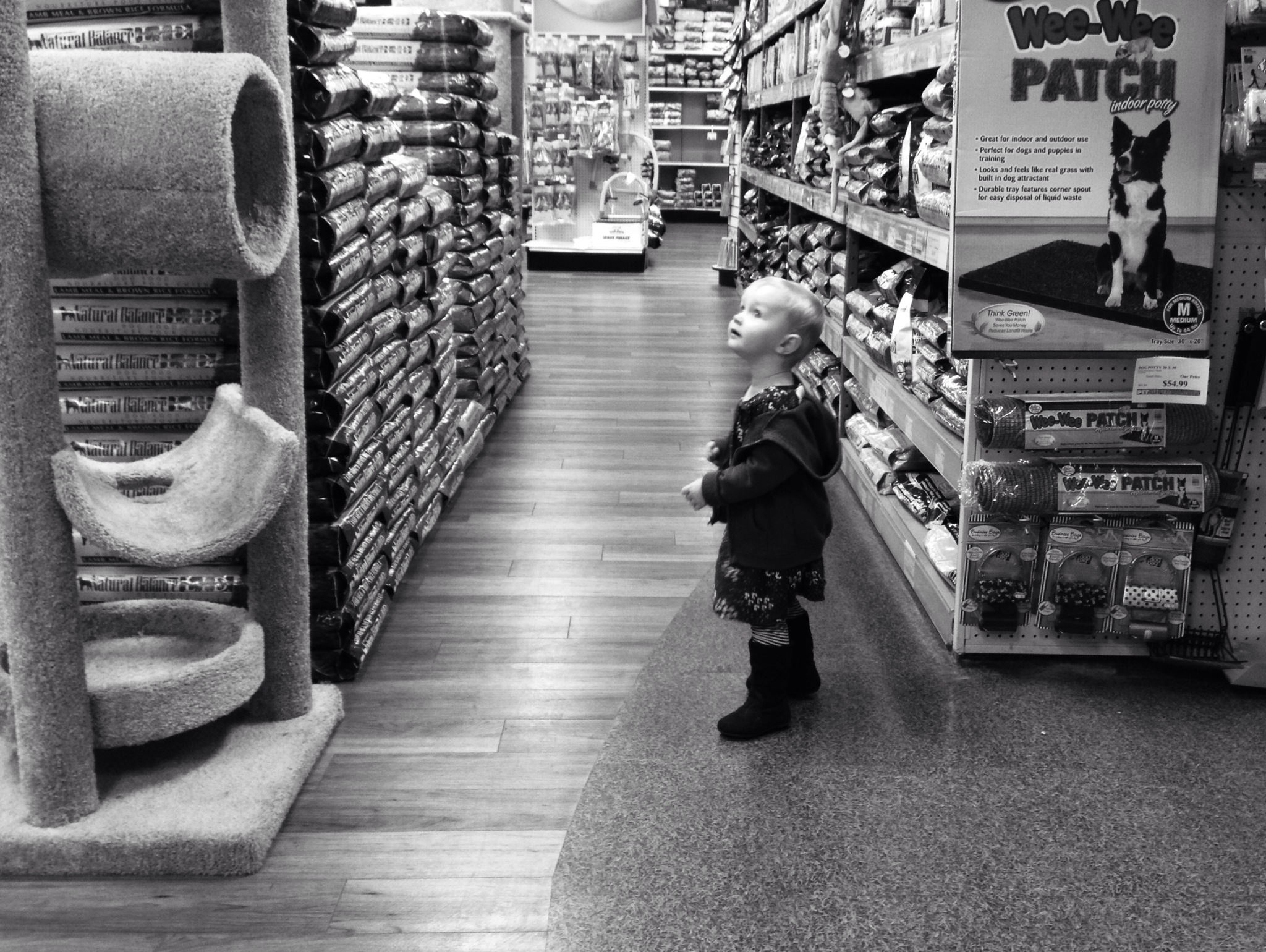We stopped at the pet store today to pick up dog food. She was unimpressed by the most of the animals(including a pot bellied pig, wtf) but loved all of the signs with photos of cats and dogs. It seems to me she feels the same way as her mama about animals in cages.