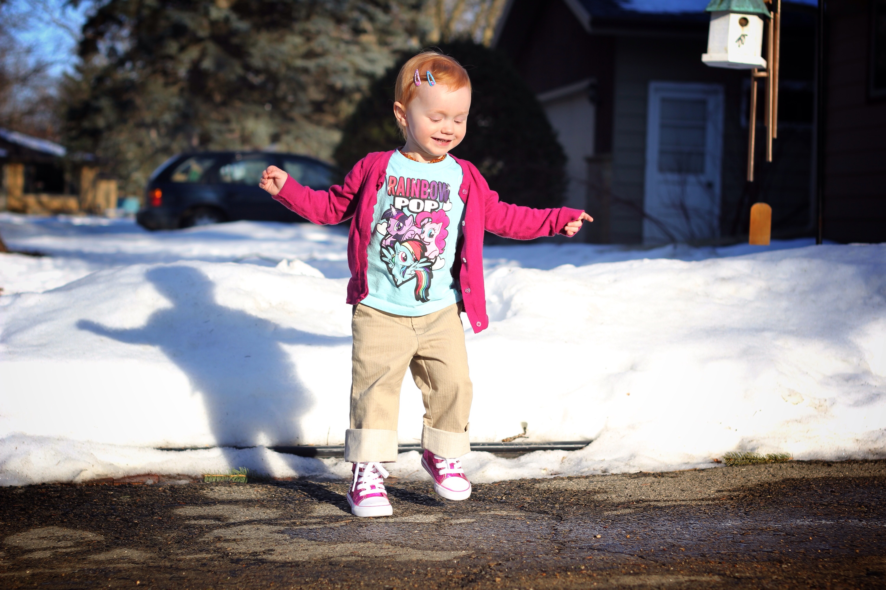 2 days makes a huge difference. Apparently 40 degree weather makes her want to jump.