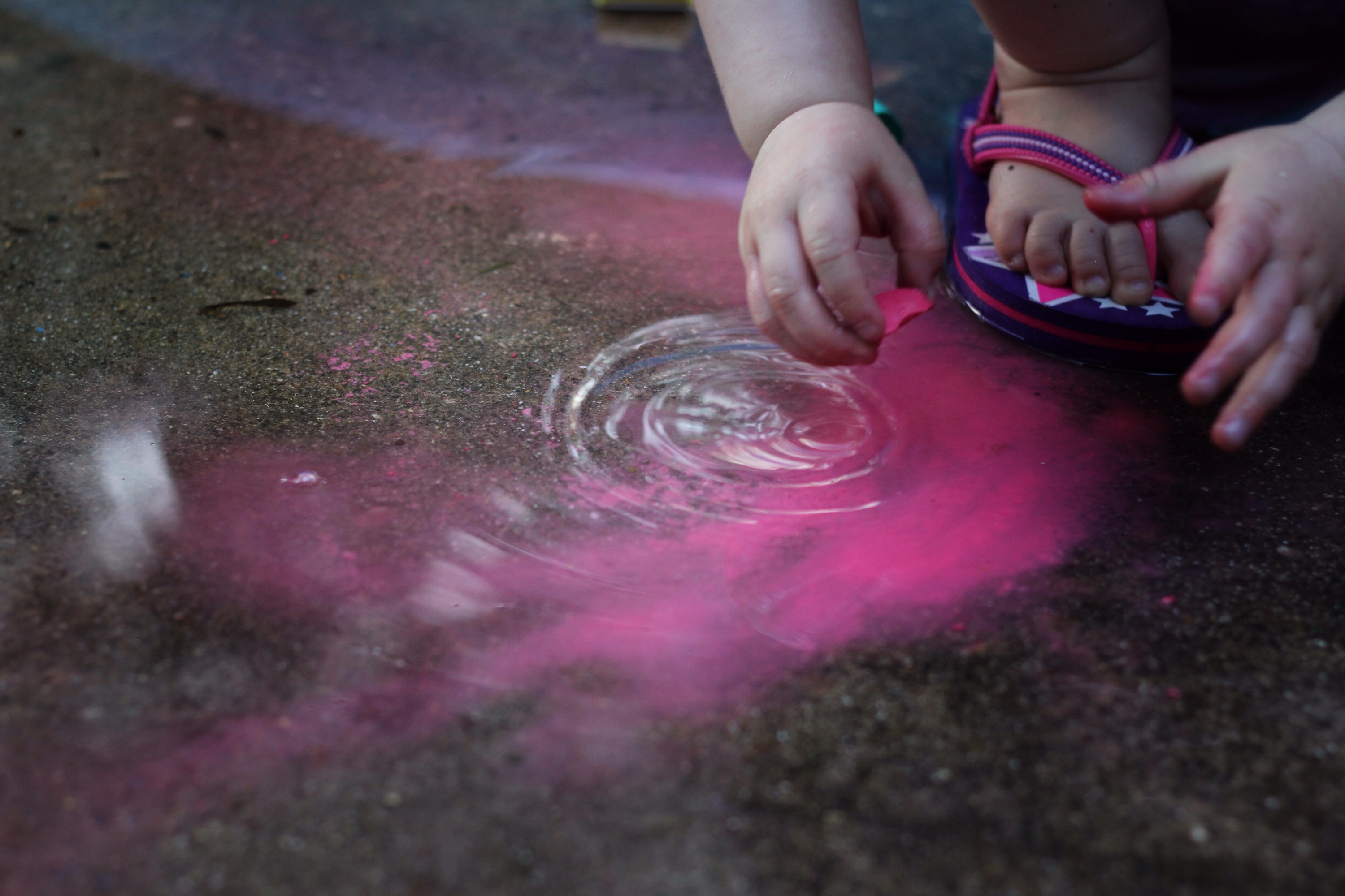 I spent some time photographing her this weekend. I was so intrigued by her drawing with the chalk on the wet concrete. She created one masterpiece after another and just like that washed them away and started all over. There was something really magical and beautiful about the whole process and I got swept up capturing it.