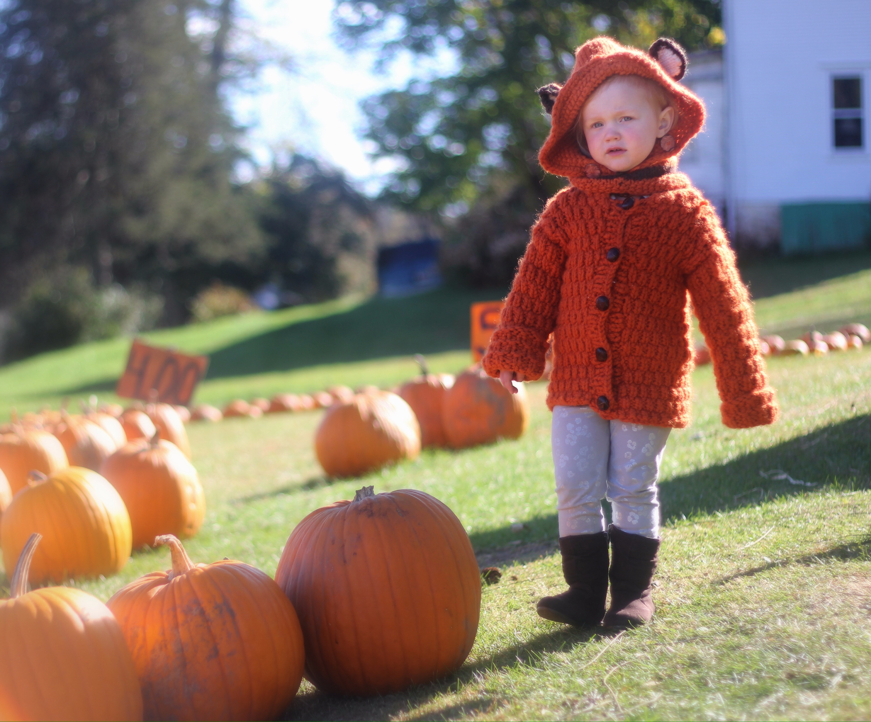 We went to the pumpkin patch today, the same one we visit every year, and she wore the same sweater she wore two years ago (somehow I can’t find photos of last year). She was so excited to pick out the pumpkins herself and even more so to arrange them around the yard once we got home. I love this kid, more and more every single day.