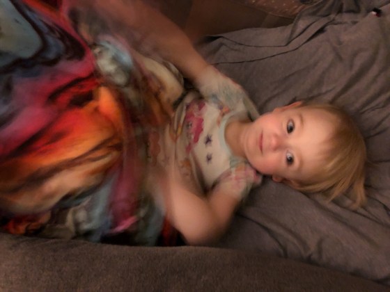 While at the store, the baby saw the display of beds and pointed and said “night night”. Both girls proceeded to walk over the the bed, climb up and lie down.